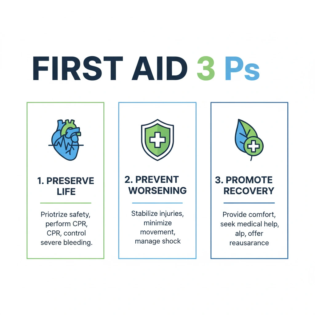 Promote Recovery: When possible, first aiders take steps to help the healing process begin. This includes providing reassurance, ensuring comfort, and managing pain where appropriate.