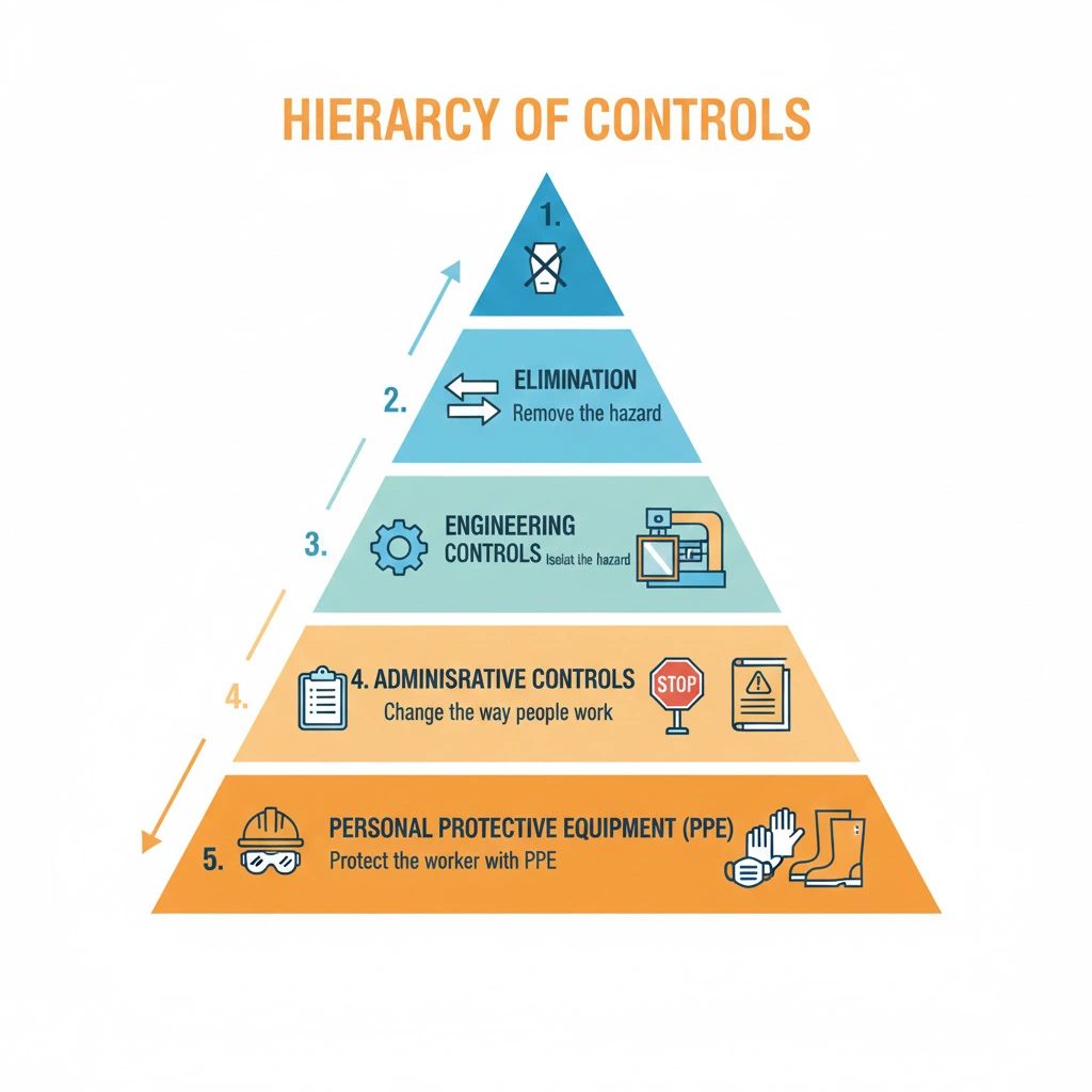 Here’s where theory meets practice. For each identified risk, especially those rated medium or higher, you need to implement controls. The hierarchy of controls provides a roadmap, from most to least effective:
