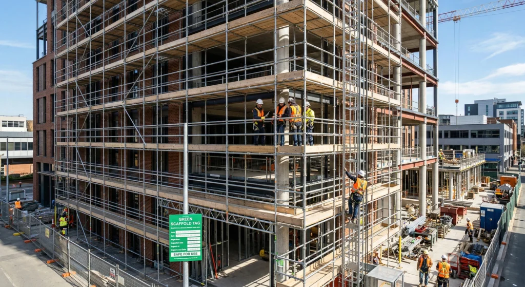 In the UK, scaffolding must be erected and inspected by a competent person. It must be inspected before first use, after any alteration, after any event that could affect stability (like a storm), and at regular intervals not exceeding 7 days.